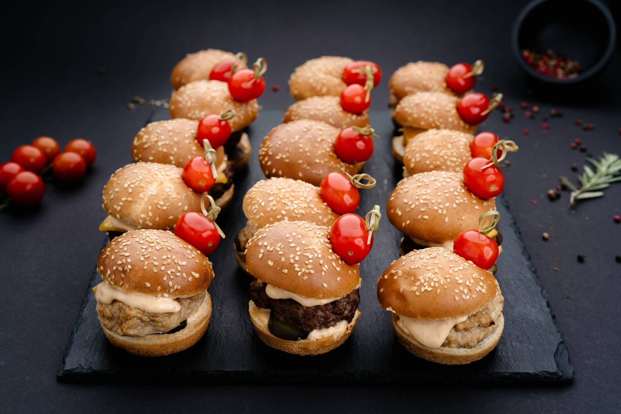 În Cluj, serviciul nostru de mini burgers catering îți oferă preparate delicioase, livrate rapid și gata de servire. Ne concentrăm pe utilizarea ingredientelor de cea mai bună calitate, pentru ca fiecare platou cu mini burgeri să fie o adevărată experiență gourmet.